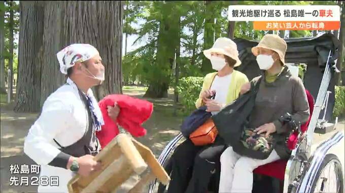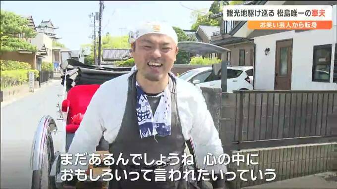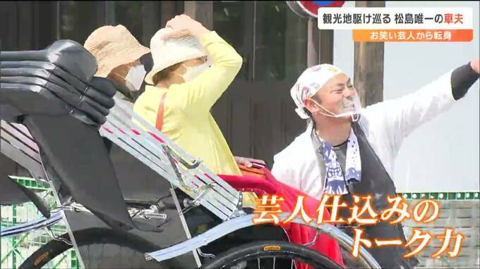 「東北の観光地で人力車をやろうと思った時に、日本三景なのに人力車がないと思い松島でやろうと、めちゃくちゃ楽しませて…、芸人時代に笑いをとれなかったので松島で笑いをとってやろうと。ちゃんと喜んで頂ける人力車にしたい」