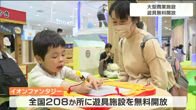 0歳から小学2年生までが対象で、普段は有料ですがキッズスペースを運営する「イオンファンタジー」は5日、子どもたちに笑顔いっぱい、楽しく過ごしてほしいと全国208カ所にある遊具施設を無料で開放しました。