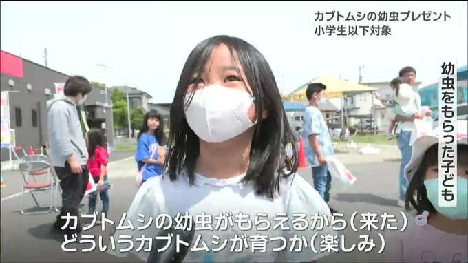 「カブトムシの幼虫がもらえるから(来た)。どういうカブトムシの育つか(楽しみ)」