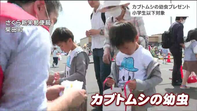 宮城県柴田町のさくら新栄郵便局では、子どもたちに人気のカブトムシの幼虫がプレゼントされました。