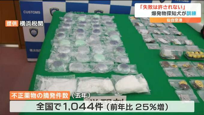 税関によりますと、不正薬物の摘発件数は去年、全国で1044件と、前年に比べ25%増えているということです。