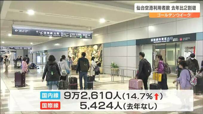 今年のゴールデンウィークに仙台空港を利用した人の数はおよそ9万8000人で、新型コロナの規制緩和などの影響で去年から2割以上増えました。