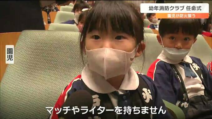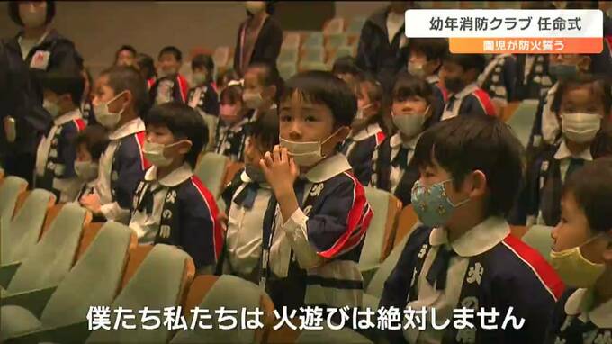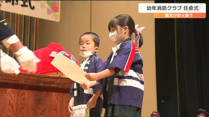 宮城県加美町で11日、町内の園児で構成する「幼年消防クラブ」の任命式があり、園児たちが防火を誓いました。