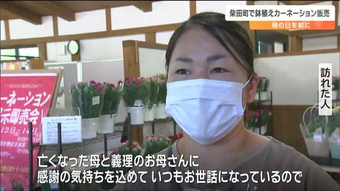 5月14日の「母の日」を前に、鉢植えカーネーションの産地として知られる宮城県柴田町で展示即売会が開かれています。