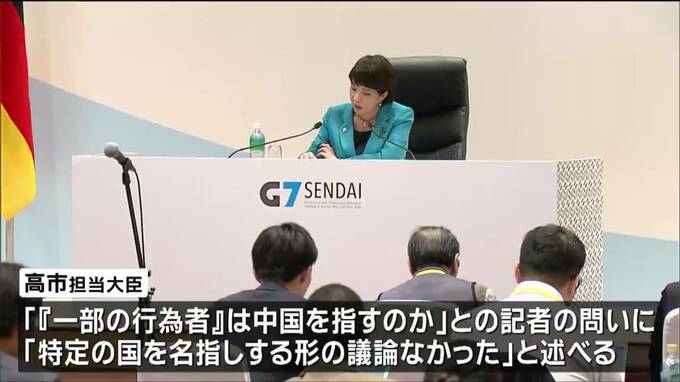 また、高市担当大臣は、「『一部の行為者』は、中国を指すのか」という記者からの問いに対しては、「特定の国を名指しする形での議論はなかった」と述べました。