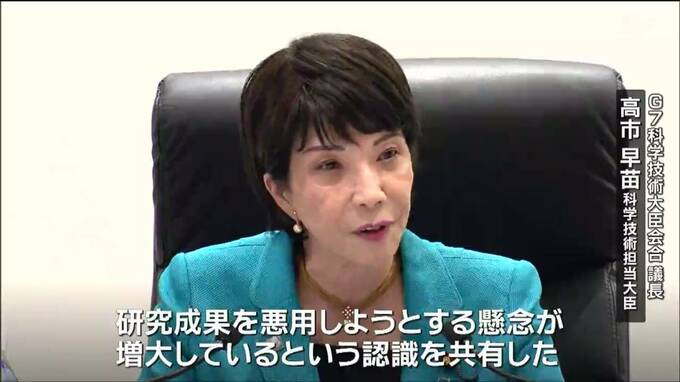 仙台市で開かれていたG7科学技術大臣会合は13日、開かれた研究環境・成果を軍事に不正流用することへの懸念を示す共同声明を発表しました。