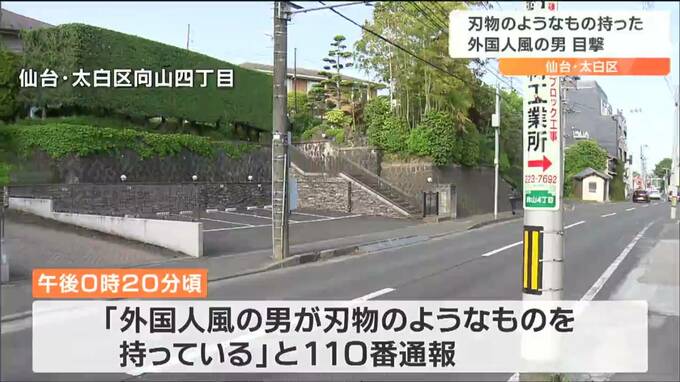 仙台市太白区向山で"刃物男"の目撃情報 2023年5月16日(火) 18:40 国内 16日午後0時20分頃、仙台市太白区向山四丁目の路上で「外国人風の男が刃物のようなものを持っている」と通行人から110番通報がありました。警察によりますと男は、年齢が20代から30代くらい、身長170センチから180…