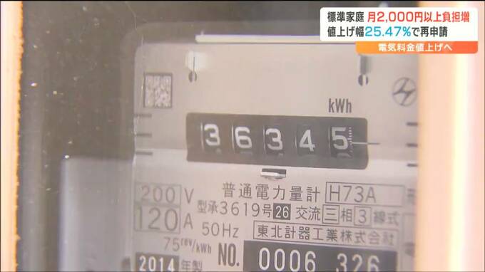 標準的な家庭で"月2000円以上増"東北電力再申請「苦渋の決断した」来月1日にも電気料金値上げへ 2023年5月16日(火) 18:23 国内 家庭向け電気料金について東北電力は、値上げ幅を平均25.47%に見直したうえで国に再申請しました。値上げは来月1日から実施される見通しで標準的な家庭では、電気代が月2000円以上高くなる計算です。東北電力 樋…
