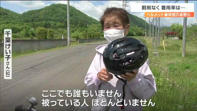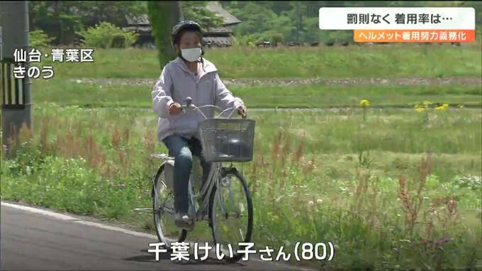 「簡単なんです、こうして」このように話すのは、仙台市青葉区に住む千葉けい子さん(80)です。千葉さんは、4月から、自転車に乗る際必ずヘルメットをつけるようになりましたが、ヘルメットはまだ定着していないと感じています。