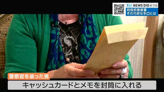 女性は、電話の指示通り自宅を訪れた警察官を装った男にキャッシュカードと暗証番号が書かれたメモを手渡すと、男は女性の目の前で封筒にいれたと言います。そして…。