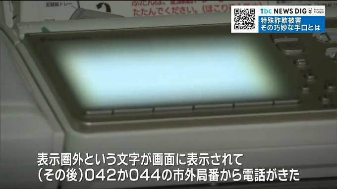 「表示圏外という文字が画面に表示されて、その後、042・044の市外局番から電話がきた。詐欺グループでよく使われる名簿に(名前が)載っている郵便局と銀行から現金が引き落としされている」