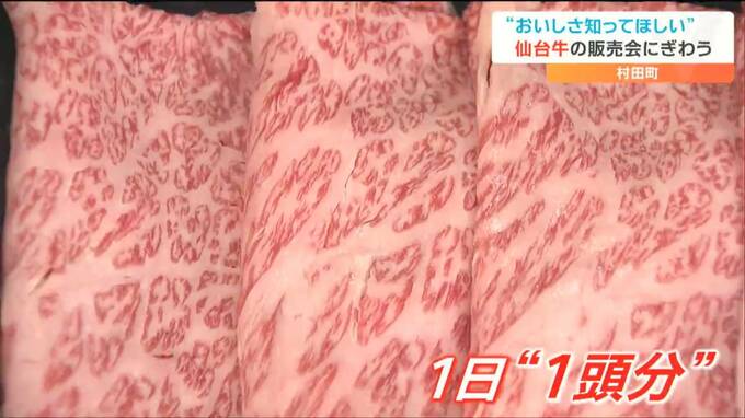 「1日あたり1頭分をステーキ・すき焼き・焼肉用などに分け1パック2500円」仙台牛の販売会 宮城・村田町 2023年5月19日(金) 18:50 国内 宮城県村田町の仙台牛を多くの人に知ってもらおうという販売会が19日から町内で始まりました。会場は、数量限定の仙台牛を買い求める人でにぎわいました。村上晴香キャスター:「道の駅村田、朝から多くの人が訪れ…