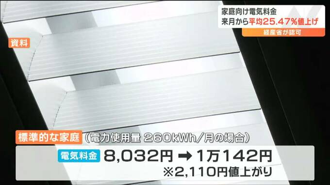 東北電力は燃料費の高騰などを理由に5月16日、国に対し家庭向け電気料金について平均25.47%の値上げを再申請していました。経済産業省は19日、この申請を認可しました。