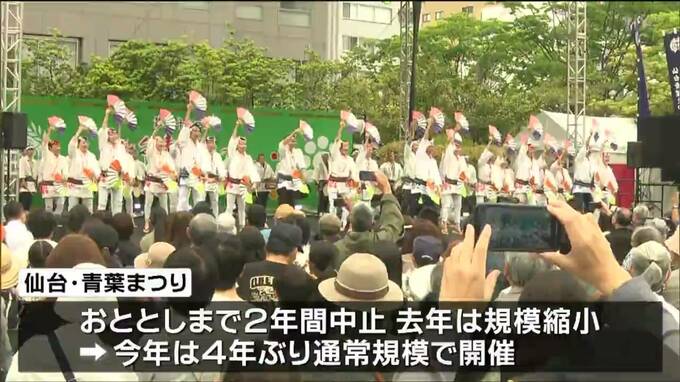 仙台・青葉まつりは、新型コロナの影響で、おととしまでの2年間は中止、去年は規模を縮小していて、今年は4年ぶりの通常規模での開催です。