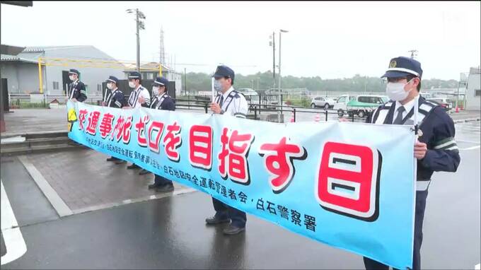 白石市で20日、警察官らが交通事故防止を呼びかけるキャンペーンが行われました。