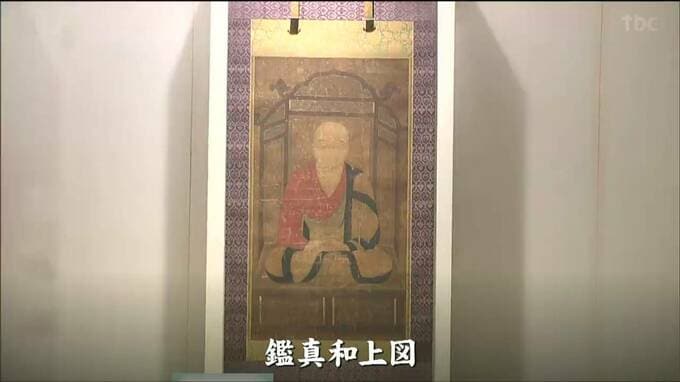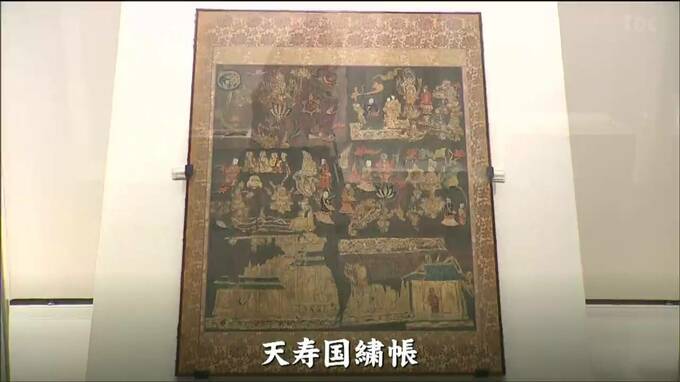 また、23日から、現存する最古の鑑真画像とされる鑑真和上図や、奈良県の中宮寺の国宝で飛鳥時代に作られた刺繍品、天寿国繍帳の展示が始まりました。これは622年、聖徳太子の死を悼み、妻の橘大郎女が死後の世界を描かせた現存する日本最古の刺繍です。当時の服装や信仰などを知るうえでも貴重な作品とされています。