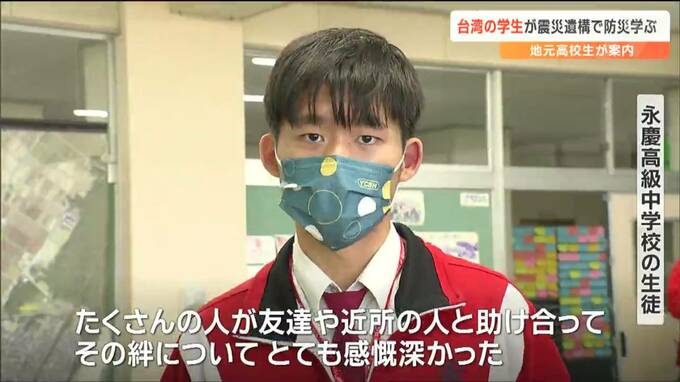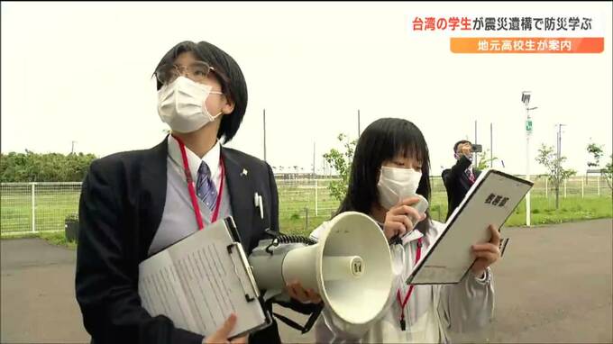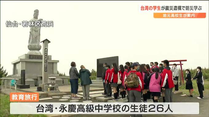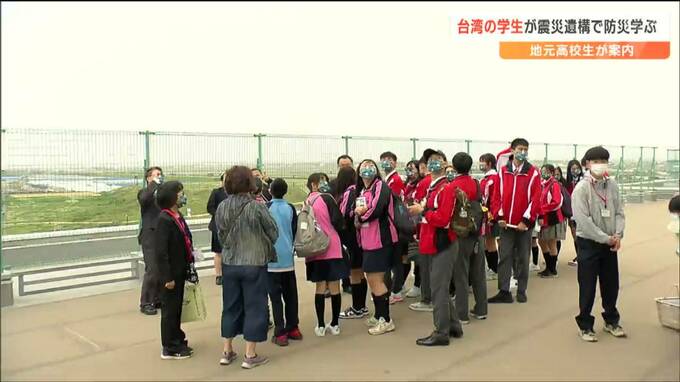 台湾の学生が23日、仙台市の震災遺構などを訪れ、地元高校生の案内のもと津波防災について学びました。