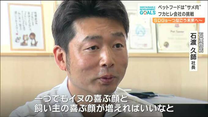 「震災後に地元のことや会社のことについて様々な協力をしてくれる方が気仙沼にきてくれて、サメの活用について考える時間がたくさんあったのですが、人向けの商品しか頭になかったものが、いろいろなアイデアをもらう中でペットフードにサメ肉を使用したらどうなんだろうということで」
