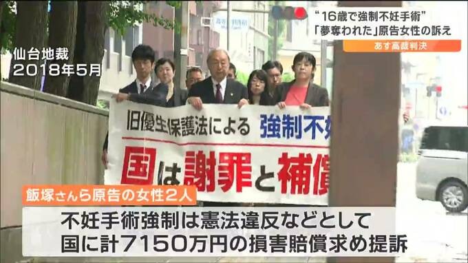 不妊手術の根拠となった法令が旧優生保護法。2018年、飯塚さんら原告の女性2人は、旧優生保護法による不妊手術の強制は憲法違反などとして国に総額7150万円の損害賠償を求める訴えを仙台地裁に起こしました。