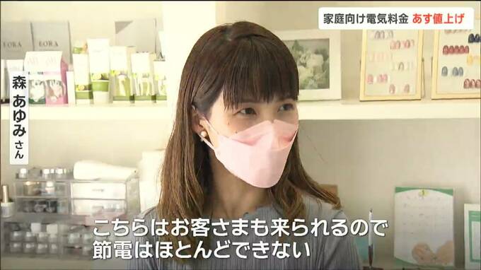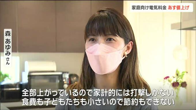 「去年に続き、また、あすから値上がりして、また次も(値上げが)あるのかなと思うと、家電ももう少し節電できるものに替えたりも考えなければいけないのかなと思っています」