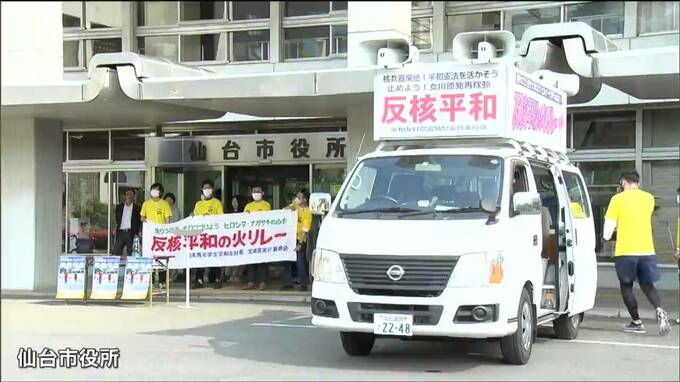 リレーには広島平和記念公園の「平和の灯」が使われていて、集会では、核廃絶を国に働きかけるよう求める要請書が仙台市の担当者に手渡されました。
