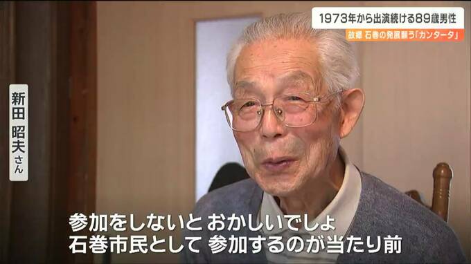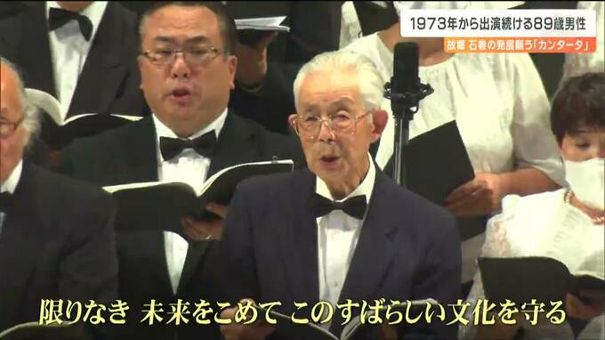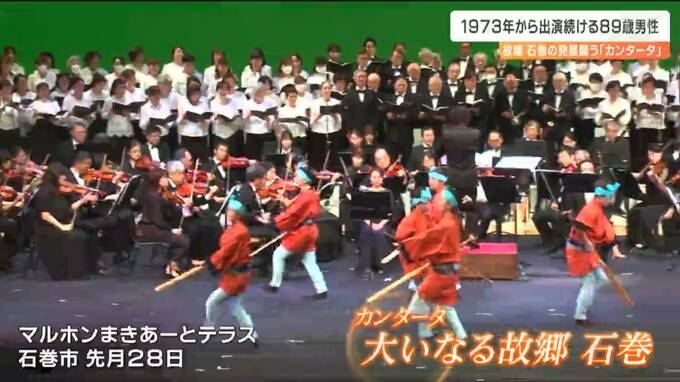合唱や管弦楽、舞踊などが一体となり、故郷・石巻の発展を願う声楽曲、カンタータの公演が、宮城県石巻市で行なわれました。1973年から、10年ごとに披露されてきたこのカンタータ、第1回から出演を続ける男性の思いとは。