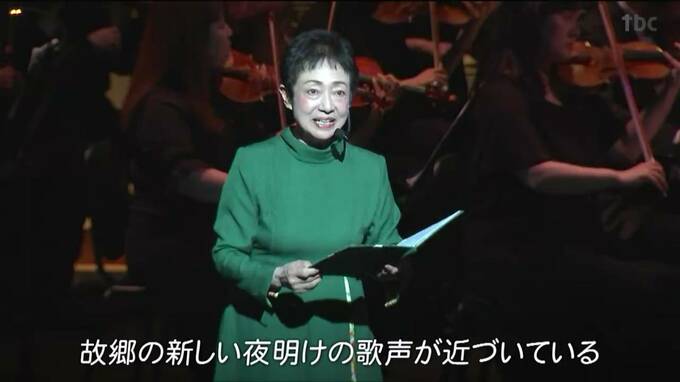 「故郷の新しい夜明けの歌声が近づいている。さあ石巻の新しい誕生です」「♪石巻港に」「♪えーいえーいどっとこらしょ」