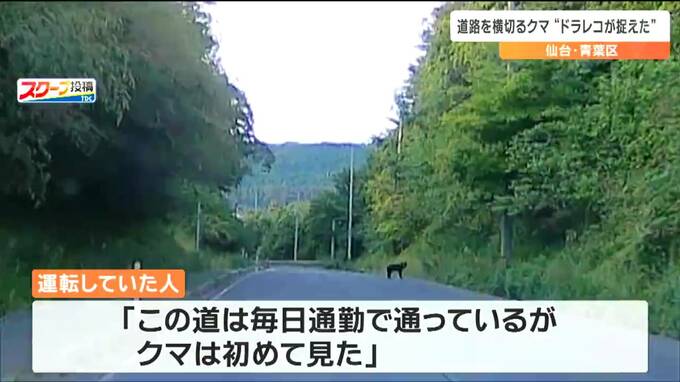 6日朝早く、仙台市青葉区で、道路を横切るクマの姿を走行中の車のドライブレコーダーが捉えました。近くには小学校や保育所があり、警察が注意を呼びかけています。