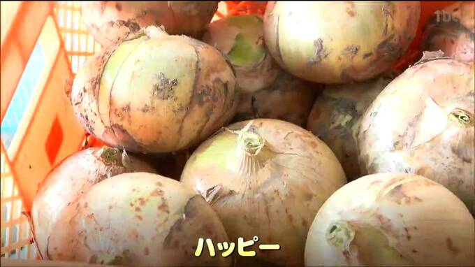 この新タマネギは、「ハッピー」という品種で、5月末に、1年生が収穫しました。甘味があり辛さは控えめなのが特徴です。