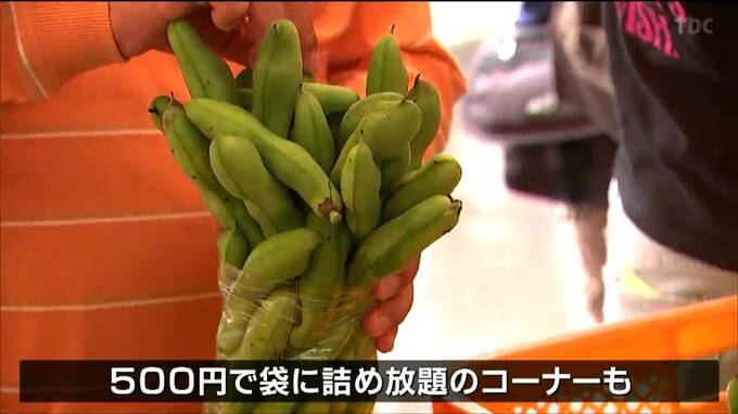 会場の500円で袋に詰め放題のコーナーでは、訪れた人たちがビニールいっぱいに詰め込んでいました。
