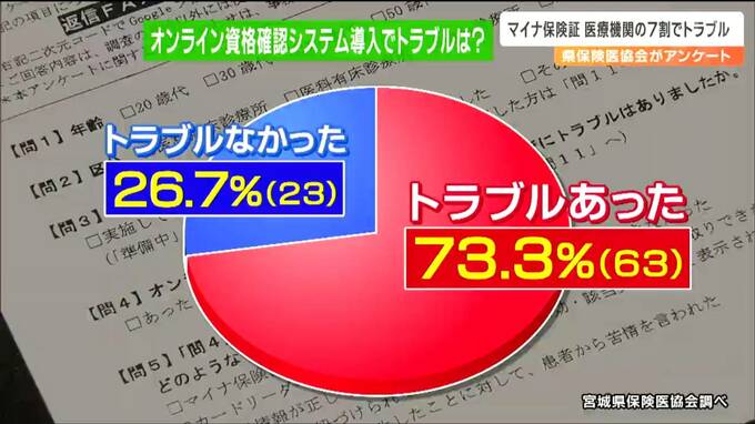 宮城県内の医師や歯科医師でつくる宮城県保険医協会は5月29日から6月7日までの間、県内641の医療機関に対し、マイナ保険証のオンライン資格確認システムに関するアンケートを行いました。