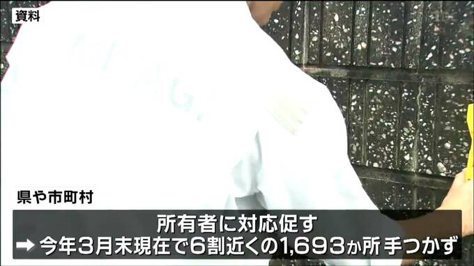 県や市町村は、所有者を訪問し対応を促してきましたが、今年3月末現在で6割近くの1693か所が手つかずのまま残されているということです。