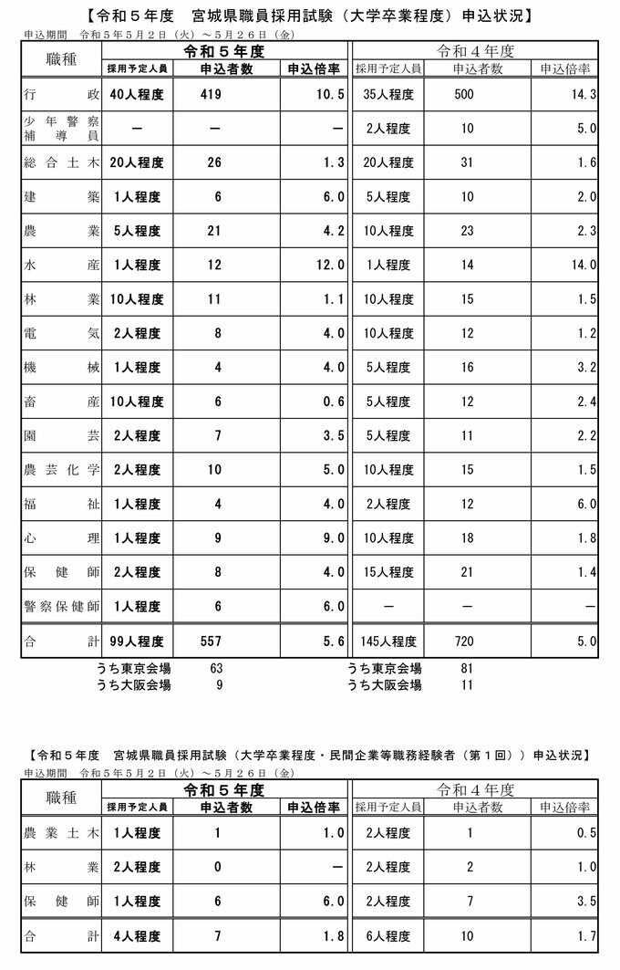 2023年度の宮城県職員採用試験の第一次試験が6月18日に行われます。試験には、あわせて586人が申し込みを行っています。