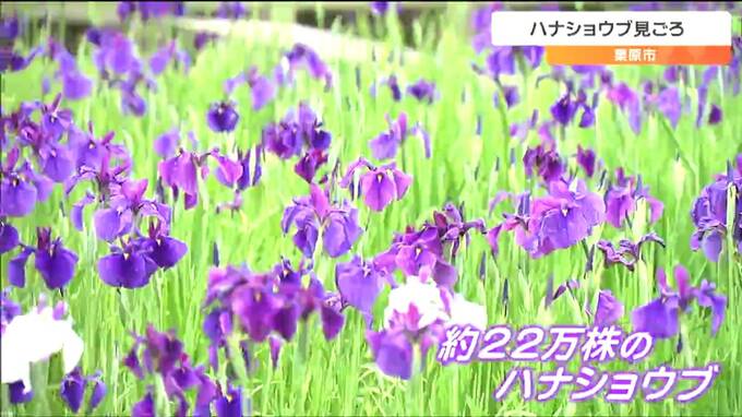 あやめ園のハナショウブは来週にかけて開花のピークとなり、6月下旬まで楽しめる見込みです。