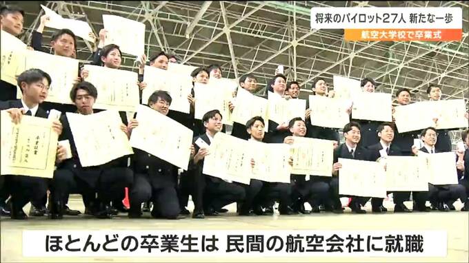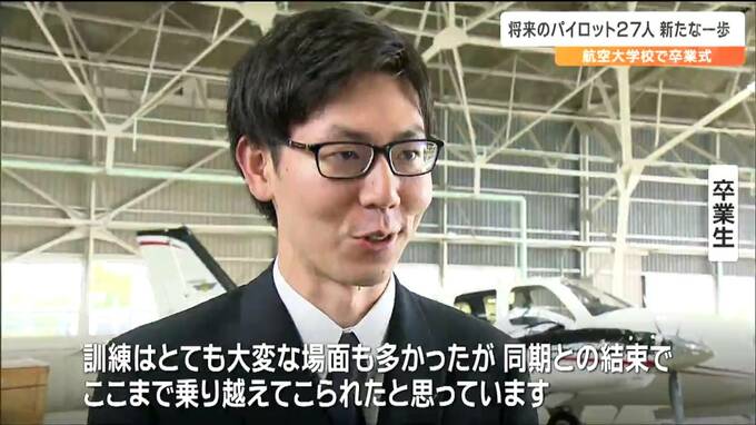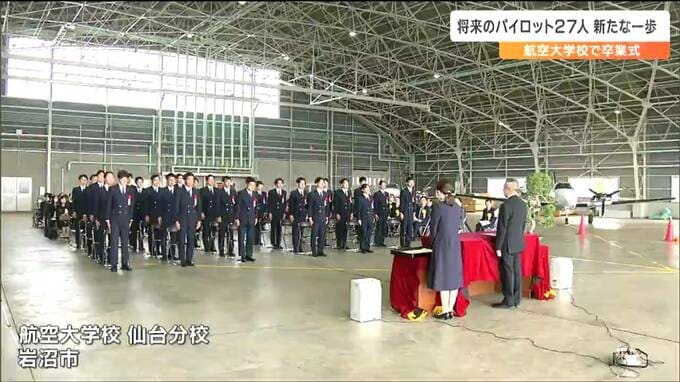 パイロットとしての知識と技能の修得に努めてきました。宮城県岩沼市の航空大学校で15日、卒業式が行われ、将来のパイロット27人が新たな一歩を踏み出しました。