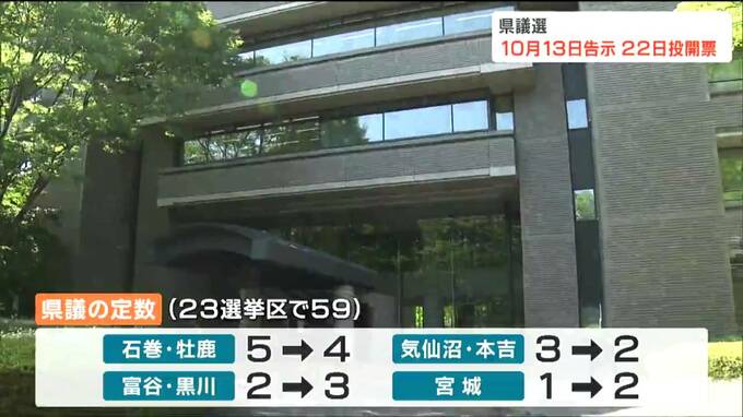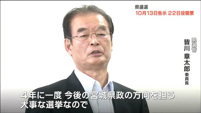 任期満了に伴う宮城県議会議員選挙は、今年の10月13日告示、22日投開票の日程で行われることになりました。