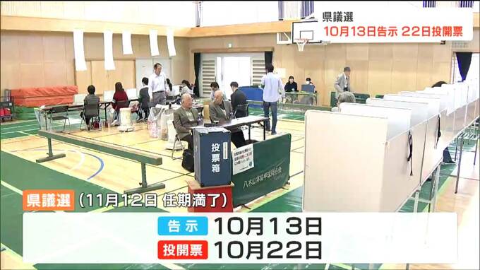 県議選の日程は、19日に開かれた県選挙管理委員会の協議で決まりました。県議選は、11月12日の任期満了に伴うもので、10月13日告示、22日投開票の日程で行われます。
