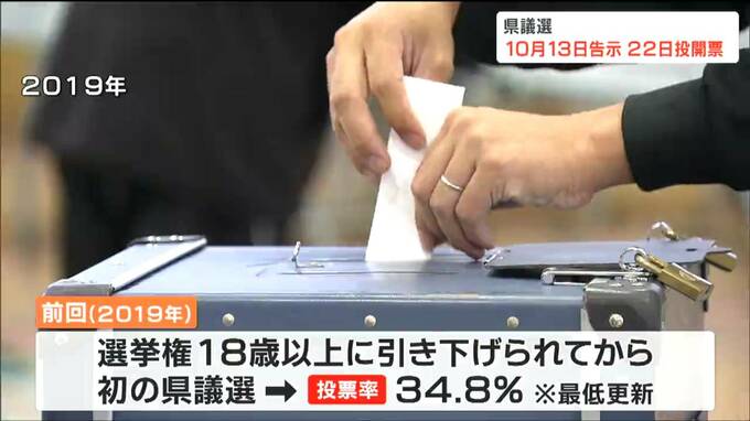 前回2019年は、選挙権の年齢が18歳以上に引き下げられてから初めての県議選でしたが、投票率は34.8%と戦後最低でした。