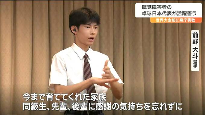 「感謝の気持ち忘れず世界に挑みたい」世界ろう者ユース卓球選手権大会 日本代表の高校生が決意語る 宮城 2023年6月20日(火) 16:46 国内 聴覚に障害のある選手による卓球のユース世界大会が、来月台湾で開催されます。その大会に日本代表として出場する宮城県内の高校生が県庁を表敬訪問し活躍を誓いました。県庁を訪れたのは、県立聴覚支援学校高等部…