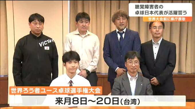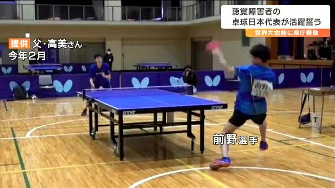 県庁を訪れたのは、県立聴覚支援学校高等部2年の前野大斗選手です。前野選手は、去年11月、全国ろう学校卓球大会で優勝。今年2月の世界選手権最終選考会でも優勝し、初めて開かれる世界ろう者ユース卓球選手権大会の日本代表に選ばれました。大会は12歳~19歳が対象で補聴器なしで競技が行われ、男子は、10か国からおよそ20人が出場予定です。