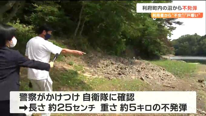 20日午後、宮城県利府町内の沼から、長さ約25センチの不発弾が見つかりました。爆発の危険性はなく、けがをした人はいませんでしたが、利用者からは不安や戸惑いの声が聞かれました。
