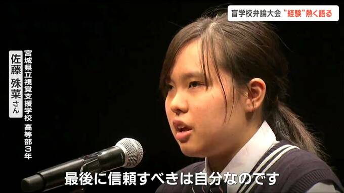 盲学校の生徒による弁論大会の東北大会が21日、仙台で開催され、参加者が自らの夢などについて語りました。
