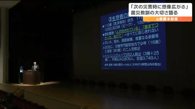東日本大震災が発生した当時、現場の指揮を執った元宮城県警察本部長の男性が、利府町で講演し震災当時の教訓を語りました。