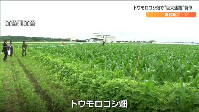 トウモロコシ畑を使った巨大迷路が7月、宮城県涌谷町で、オープンするのを前に、23日、迷路の製作が行われました。
