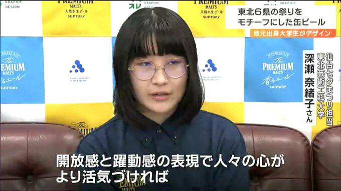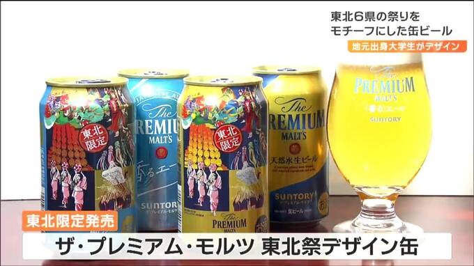 東北6県の祭りをモチーフに地元出身の大学生がデザインした缶ビールが6月から発売されます。