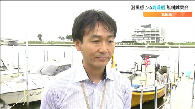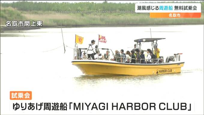 潮風を感じながら、景色を楽しめる周遊船の試乗会が23日、宮城県名取市で開かれ、招待された乗客が船からの眺めを楽しみました。