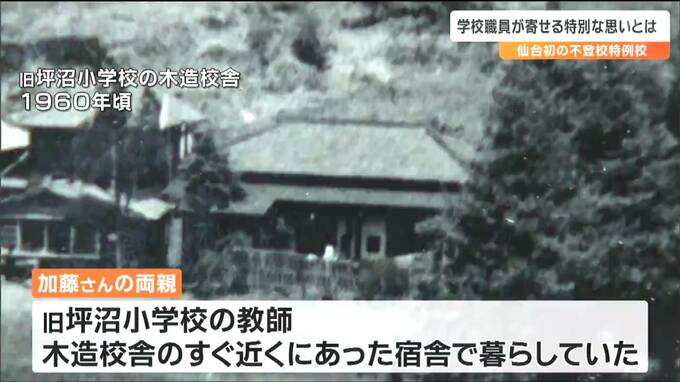 旧坪沼小で教師として働いていた加藤さんの両親は木造校舎のすぐ近くにあった宿舎で暮らしていました。その時に母親が、敷地内の宿舎で出産し加藤さんは生まれました。