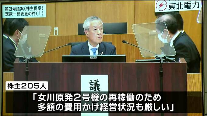 また、株主205人が、女川原発2号機の再稼働のために多額の費用をかけていて経営状況も厳しいなどとして、来年2月に予定される再稼働の中止を求める議案など6つの議案を共同で提出しました。