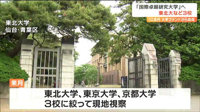 3月末までに国立や私立の大学10校から申請があり、文科省の有識者会議によって審査が進められてきましたが、7月、「東北大学」と「東京大学」、「京都大学」の3校に絞って現地視察が行われることになりました。