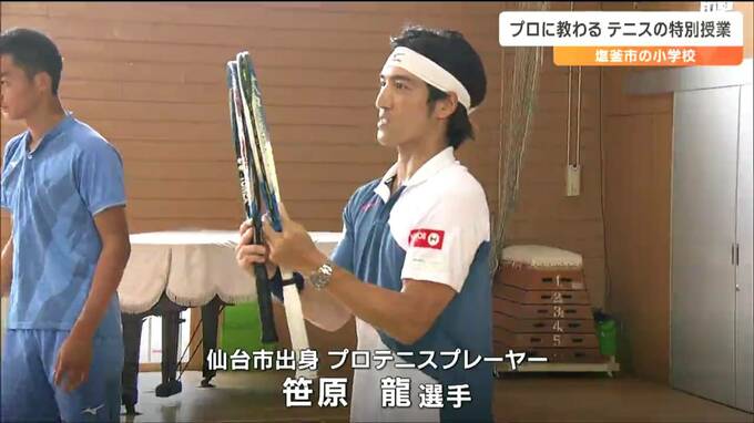 笹原選手は去年から子どもたちにテニスを楽しんでもらう取り組みを進めています。この特別授業は、30日まで塩釜市内の小学校で行われます。